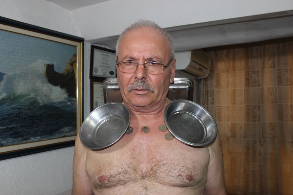 İzmir'in Konak ilçesindeki Basmane semtinde otel işleten 69 yaşındaki Ethem Arslan, yaklaşık 35 yıl önce vücudunun belirli bölgelerinin metalleri mıknatıs gibi çektiğini fark etti. Arslan'ın göğsüne ve sırtına yapıştırdığı metal kaşık, kase, tepsi, bozuk para gibi eşyalar, saatlerce düşmeden vücudunda duruyor.