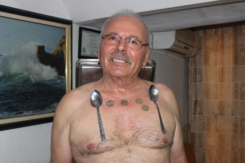 İzmir'in Konak ilçesindeki Basmane semtinde otel işleten Ethem Arslan (69), yaklaşık 35 yıl önce vücudunun belirli bölgelerinin metalleri mıknatıs gibi çektiğini fark etti.