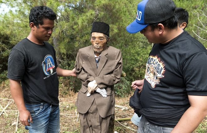 Endonezya'nın Güneyinde yaşayan Toraja Kabilesi'nin üyeleri, her yıl geleneksel olarak ölülerini mezardan çıkarıp, yeni elbiseler giydirerek ölülerine sigara içiriyorlar.