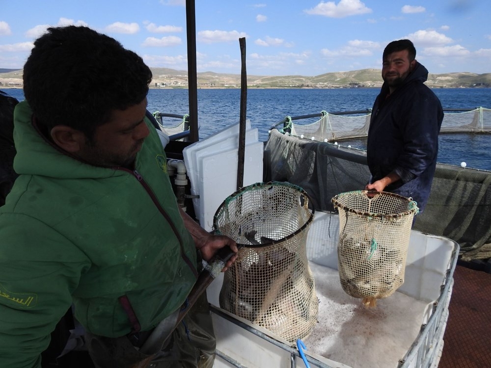 Kuluçhane'lerde üretilen yavruların büyüme evresinde hastalıklara karşı direnç geliştirmesi için aşılandığını aktaran üretim sorumlusu Hayri Aksoy, balıkları Urfa’da üretilen yerli aşıyla aşıladıklarını paylaştı. Aşılamanın her yıl tekrarlandığını ifade eden Aksoy, “Biz yılda 6 milyon balık aşılıyoruz. Boylanıp 20 gram üzerine çıkan balıkları enjeksiyonla aşılıyoruz. 20 gramdan küçük olanlara da daldırma aşı yapıyoruz. Aşılamayı genelde yaz dönemine girerken yapıyoruz. Aşılama dönemini yavrunun büyüdüğü zamana göre ayarlıyoruz. Aşı sucul ortamda olabilecek hastalıklara karşı balığın koruyor. Aşılama süremiz balık adetine göre değişiyor. Günde yaklaşık olarak 13 bin balık aşılama kapasitemiz var. Aşılama 45 gün kadar sürebiliyor. Biz kendi markamızla ihracat yapıyoruz. Üretimin yüzde 80’i ihracata gidiyor. Kalan kısmı da Türkiye’de belirli bölgelere gidiyor” dedi.