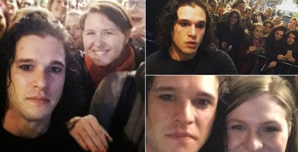 Tiyatro oyunundaki karakteri için sakallarını kesen ve göz makyajı yapan aktör, oyunun çıkışında hayranlarıyla selfie çektirdi.