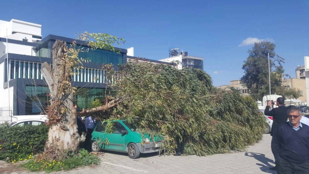 Bölgeyi iki günden beri etkisi altına alan şiddetli rüzgâr hasara yol açtı. Lefkoşa’da rüzgârın etkisiyle devrilen okaliptüs ağacı, park halindeki 5 araçta hasara neden oldu.