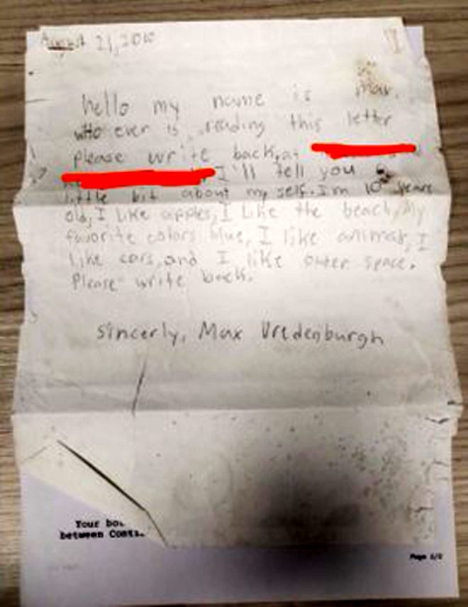 10 yaşındayken denize boş şarap şişesi içinde mektup bırakan Max Vredenburgh, 9 sene sonra gelen yanıtla en büyük sürprizi yaşadı.
