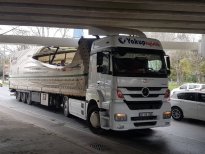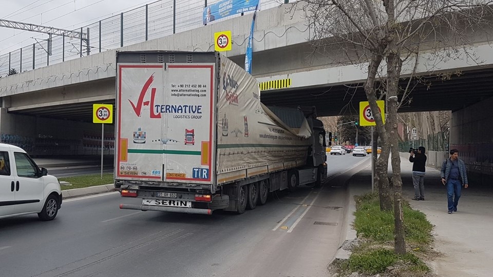 İstanbul'un Bakırköy ilçesine bağlı Ataköy'de TIR ve otobüs üst geçide sıkıştı.