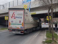Otobüs ile TIR aynı anda üst geçide sıkıştı