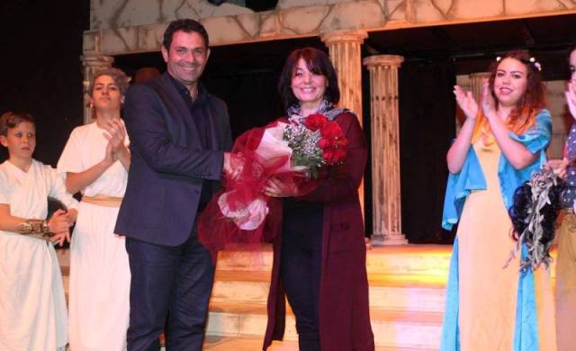 Belediye olarak her zaman gençlerin ve kültür , sanatın etkinliklerinin destekçisi olduklarını sözlerine ekleyen Hulusioğlu,oyunun yazarı Leyla Ulubatlı’yı ve oyunun yönetmeni İsmihan Yorgancı’yı teprik edip çiçeklerini takdim etti.