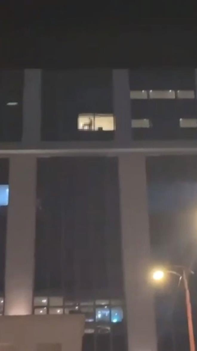 Pencere önünde cinsel ilişkiye giren çifti gören kalabalık, telefona sar