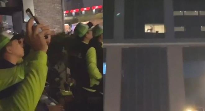 Pencere önünde cinsel ilişkiye giren çifti gören kalabalık, telefona sar