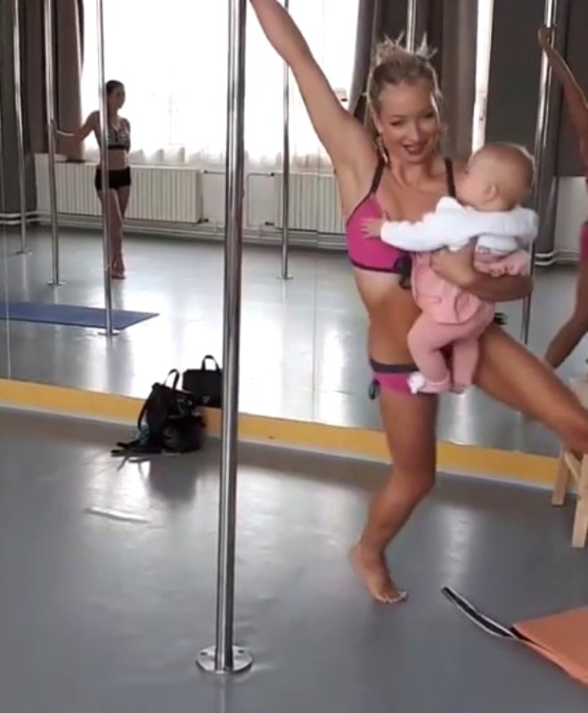 30 yaşındaki profesyonel direk dansçısı Ruzenka Kunstyrová, anne olmanın kariyerini olumsuz anlamda etkilemediğini söyleyerek, bebeği kucağındayken direk dansı yaptı.