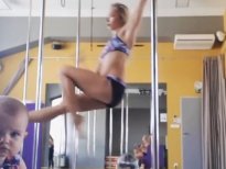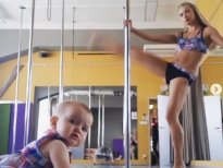 Profesyonel dansçı, kucağında bebeğiyle direk dansı yaptı!