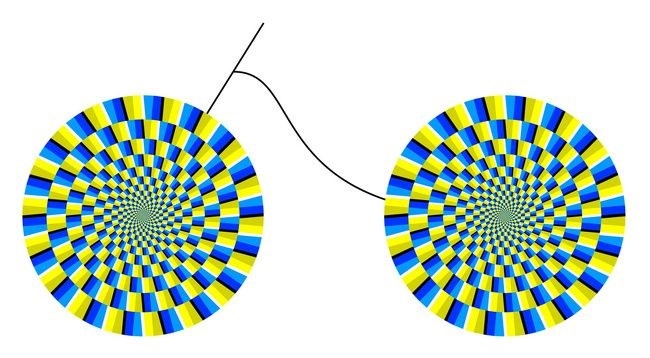 Bisikletin tekerlekleri dönüyormuş gibi görünüyor.