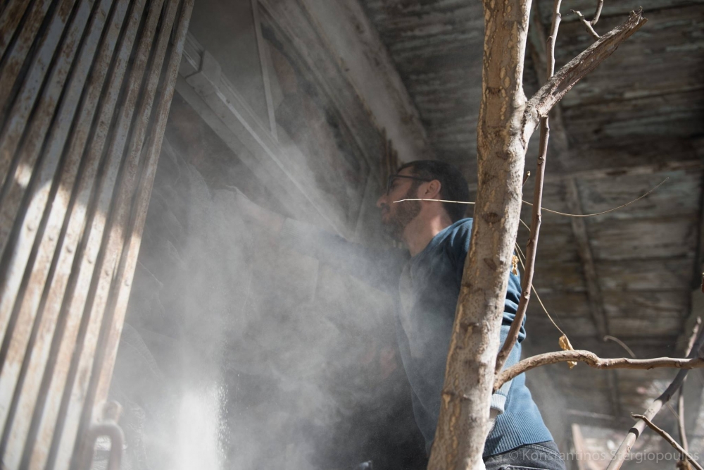 Günler öncesinden yapacağı eylemi sosyal medya üzerinden duyurmaya başlayan Tringidis ve iki arkadaşı, saat 11.00 civarı Baf Kapısı'nın kuzeyinde bulunan harap haldeki evin penceresindeki kum torbalarını indirmeye çalıştı.
