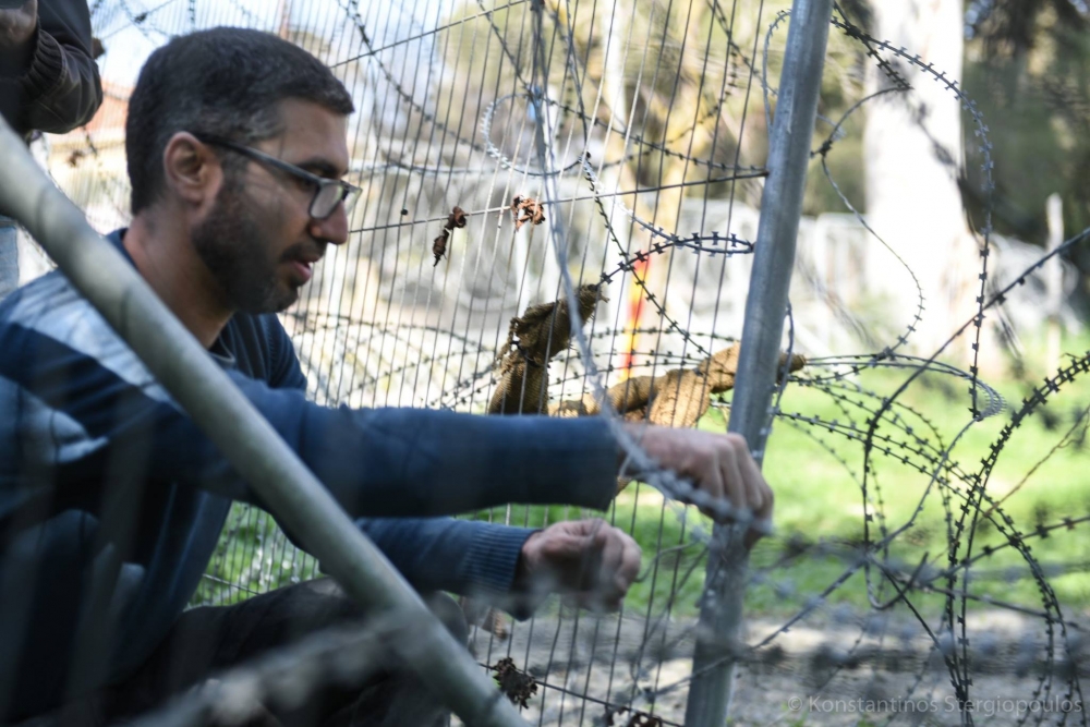 Günler öncesinden yapacağı eylemi sosyal medya üzerinden duyurmaya başlayan Tringidis ve iki arkadaşı, saat 11.00 civarı Baf Kapısı'nın kuzeyinde bulunan harap haldeki evin penceresindeki kum torbalarını indirmeye çalıştı.