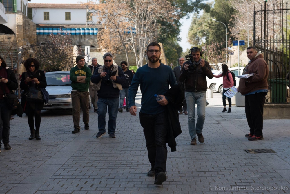 Günler öncesinden yapacağı eylemi sosyal medya üzerinden duyurmaya başlayan Tringidis ve iki arkadaşı, saat 11.00 civarı Baf Kapısı'nın kuzeyinde bulunan harap haldeki evin penceresindeki kum torbalarını indirmeye çalıştı.