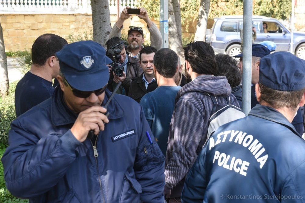 Günler öncesinden yapacağı eylemi sosyal medya üzerinden duyurmaya başlayan Tringidis ve iki arkadaşı, saat 11.00 civarı Baf Kapısı'nın kuzeyinde bulunan harap haldeki evin penceresindeki kum torbalarını indirmeye çalıştı.