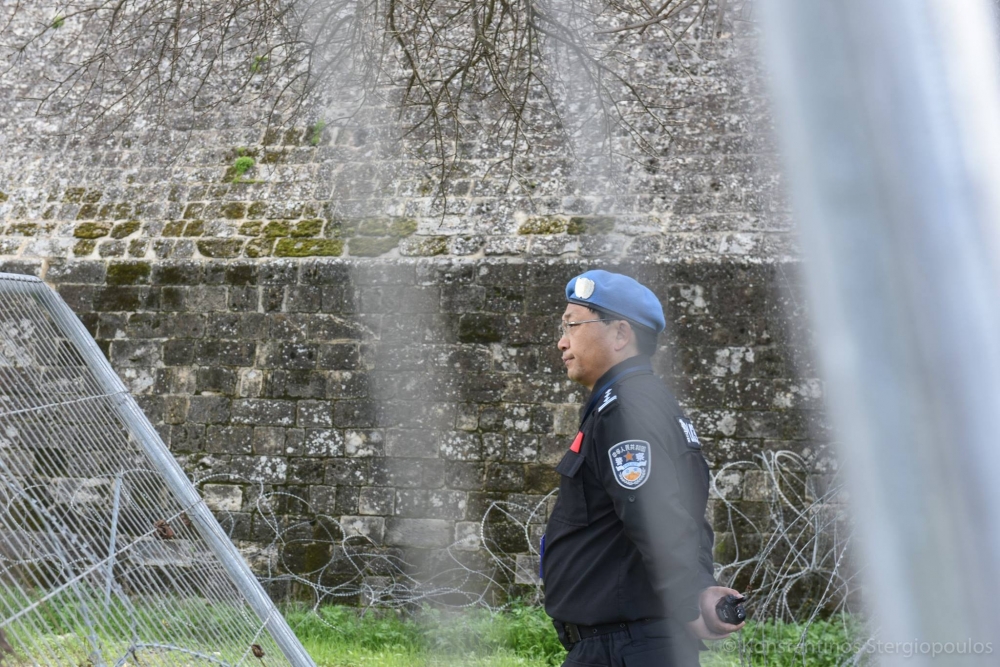 Günler öncesinden yapacağı eylemi sosyal medya üzerinden duyurmaya başlayan Tringidis ve iki arkadaşı, saat 11.00 civarı Baf Kapısı'nın kuzeyinde bulunan harap haldeki evin penceresindeki kum torbalarını indirmeye çalıştı.