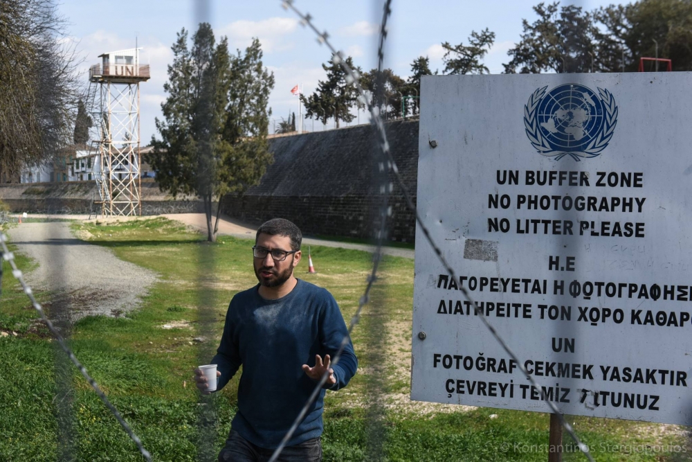 Günler öncesinden yapacağı eylemi sosyal medya üzerinden duyurmaya başlayan Tringidis ve iki arkadaşı, saat 11.00 civarı Baf Kapısı'nın kuzeyinde bulunan harap haldeki evin penceresindeki kum torbalarını indirmeye çalıştı.