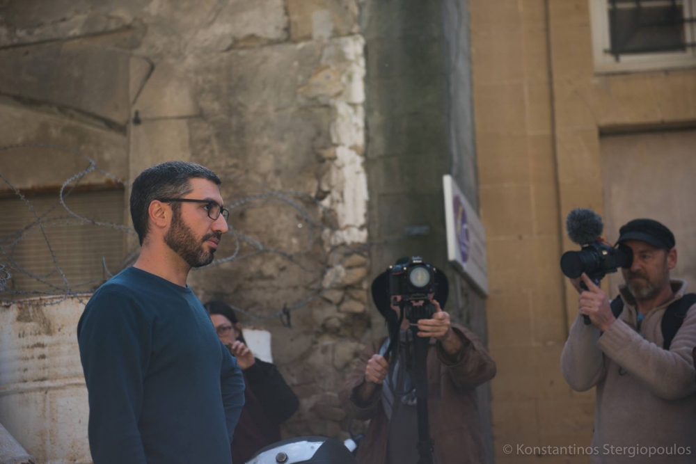 Günler öncesinden yapacağı eylemi sosyal medya üzerinden duyurmaya başlayan Tringidis ve iki arkadaşı, saat 11.00 civarı Baf Kapısı'nın kuzeyinde bulunan harap haldeki evin penceresindeki kum torbalarını indirmeye çalıştı.