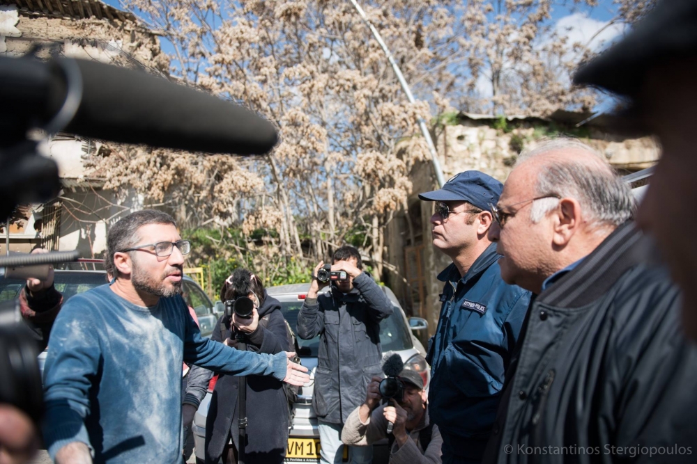 Günler öncesinden yapacağı eylemi sosyal medya üzerinden duyurmaya başlayan Tringidis ve iki arkadaşı, saat 11.00 civarı Baf Kapısı'nın kuzeyinde bulunan harap haldeki evin penceresindeki kum torbalarını indirmeye çalıştı.