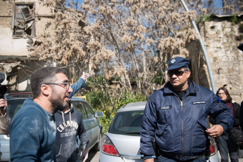 Günler öncesinden yapacağı eylemi sosyal medya üzerinden duyurmaya başlayan Tringidis ve iki arkadaşı, saat 11.00 civarı Baf Kapısı'nın kuzeyinde bulunan harap haldeki evin penceresindeki kum torbalarını indirmeye çalıştı.