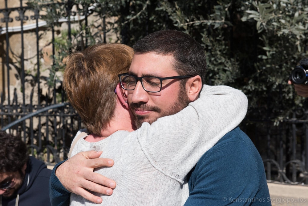 Günler öncesinden yapacağı eylemi sosyal medya üzerinden duyurmaya başlayan Tringidis ve iki arkadaşı, saat 11.00 civarı Baf Kapısı'nın kuzeyinde bulunan harap haldeki evin penceresindeki kum torbalarını indirmeye çalıştı.