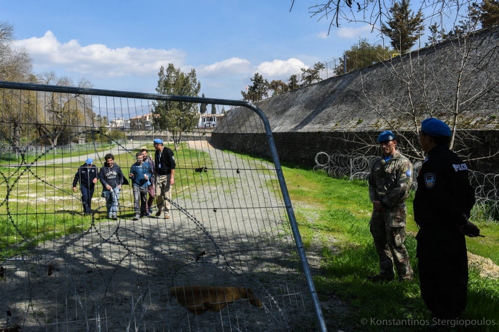 Günler öncesinden yapacağı eylemi sosyal medya üzerinden duyurmaya başlayan Tringidis ve iki arkadaşı, saat 11.00 civarı Baf Kapısı'nın kuzeyinde bulunan harap haldeki evin penceresindeki kum torbalarını indirmeye çalıştı.