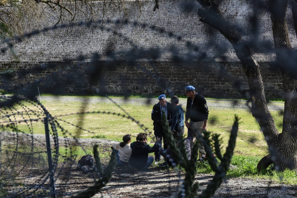 Günler öncesinden yapacağı eylemi sosyal medya üzerinden duyurmaya başlayan Tringidis ve iki arkadaşı, saat 11.00 civarı Baf Kapısı'nın kuzeyinde bulunan harap haldeki evin penceresindeki kum torbalarını indirmeye çalıştı.