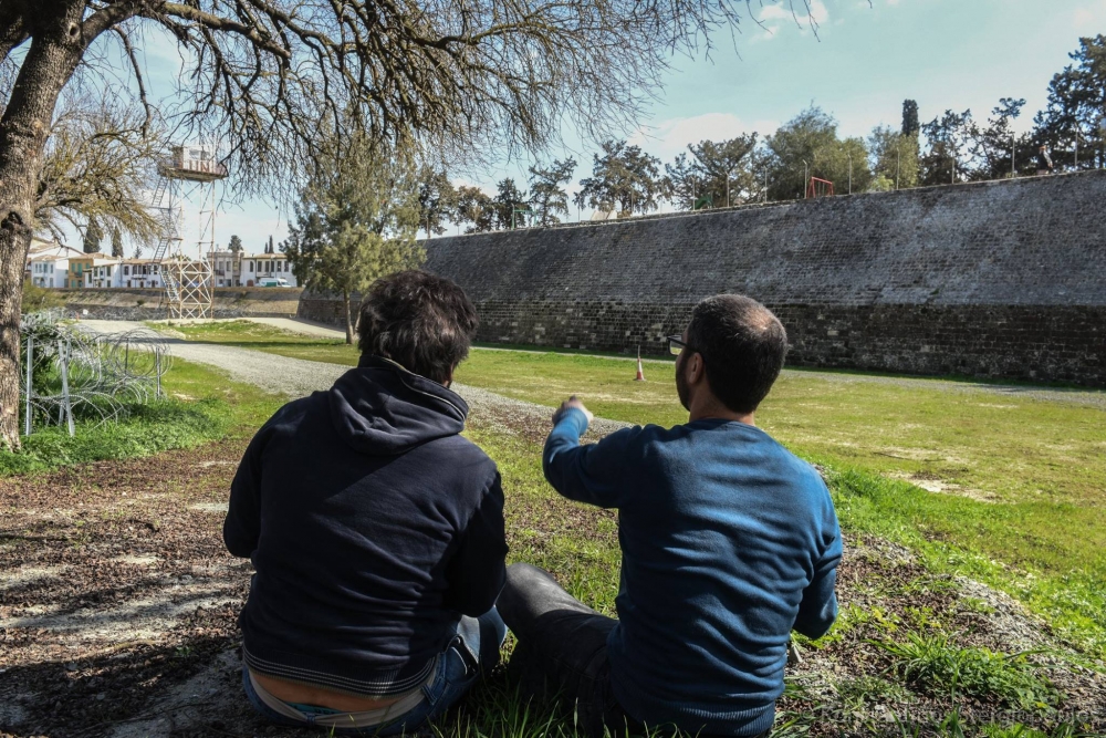 Günler öncesinden yapacağı eylemi sosyal medya üzerinden duyurmaya başlayan Tringidis ve iki arkadaşı, saat 11.00 civarı Baf Kapısı'nın kuzeyinde bulunan harap haldeki evin penceresindeki kum torbalarını indirmeye çalıştı.