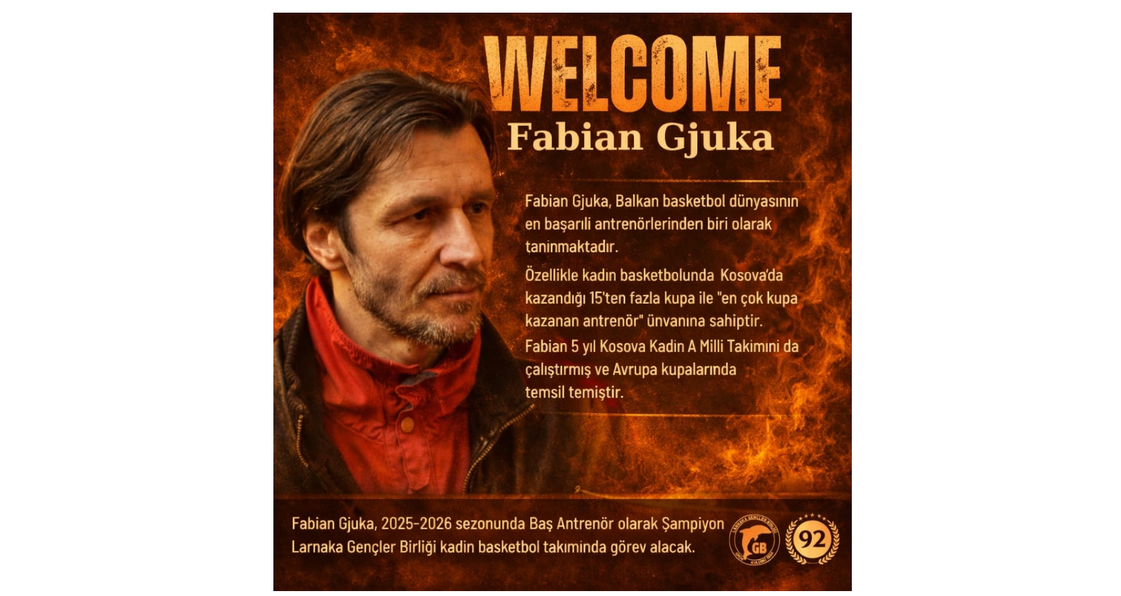 Larnaka Gençler Birliği, yeni sezon öncesi en önemli hamlelerinden birini yaparak Kosovalı başantrenör Fabian Gjuka ile anlaşmaya vardı. Kosova kadın basketbol tarihinin en çok kupa kazanan teknik direktörü olarak bilinen Gjuka, kariyerinde 16’dan fazla kupa kazanmış bir isim olarak öne çıkıyor.
