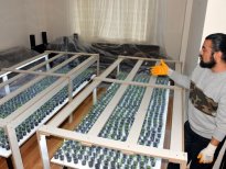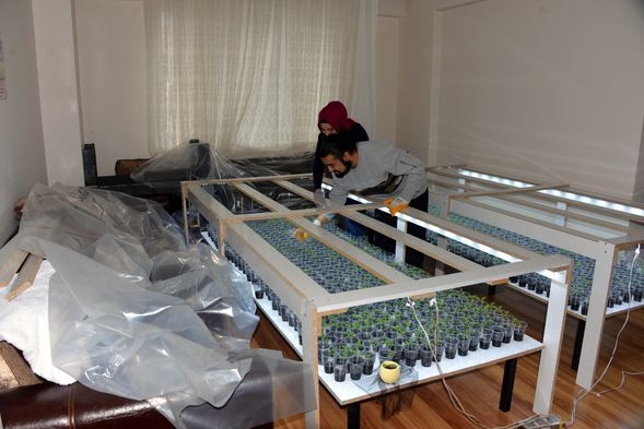 Kahramanmaraş'ta berberlik yapan Harun Altınsoylu, sebze fiyatları artınca evinin salonunu seraya çevirdi. Altınsoylu, bin 42 plastik bardağa ektiği tohumların 900’ünün fide verdiğini söyledi