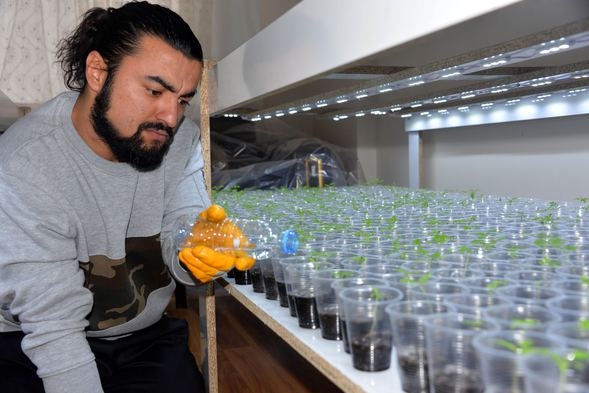 Kahramanmaraş'ta berberlik yapan Harun Altınsoylu, sebze fiyatları artınca evinin salonunu seraya çevirdi. Altınsoylu, bin 42 plastik bardağa ektiği tohumların 900’ünün fide verdiğini söyledi