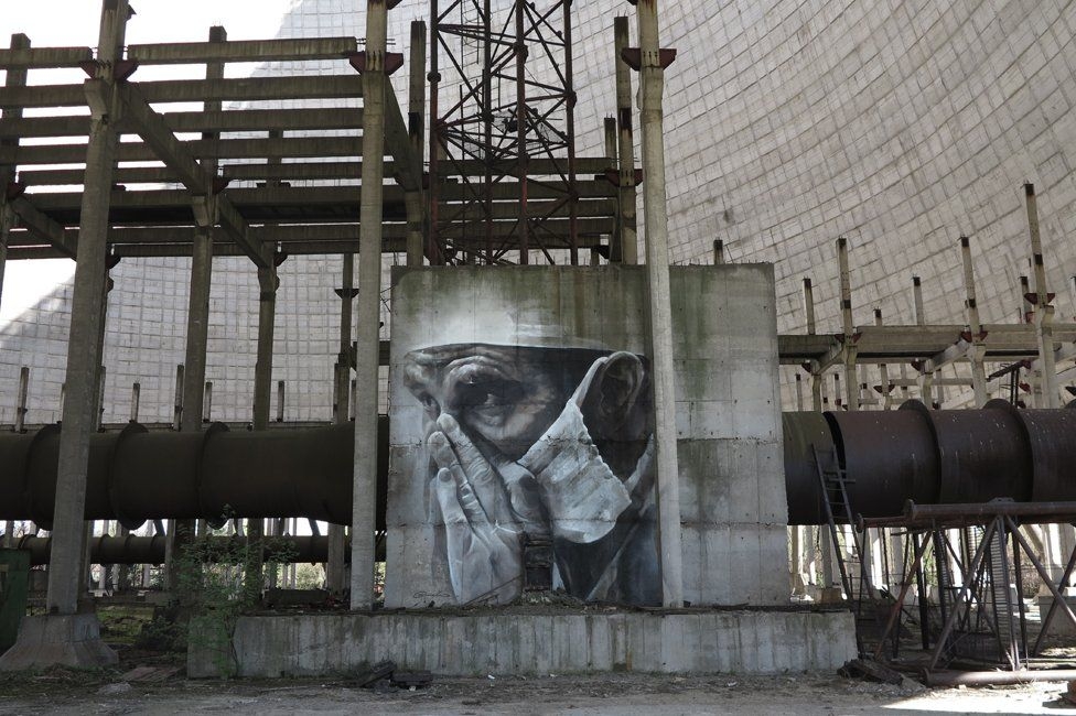 Bu çalışma, Çernobil faciasının 30. yıldönümünde, santraldeki tamamlanmamış bir jenaratörün üzerine yapıldı.