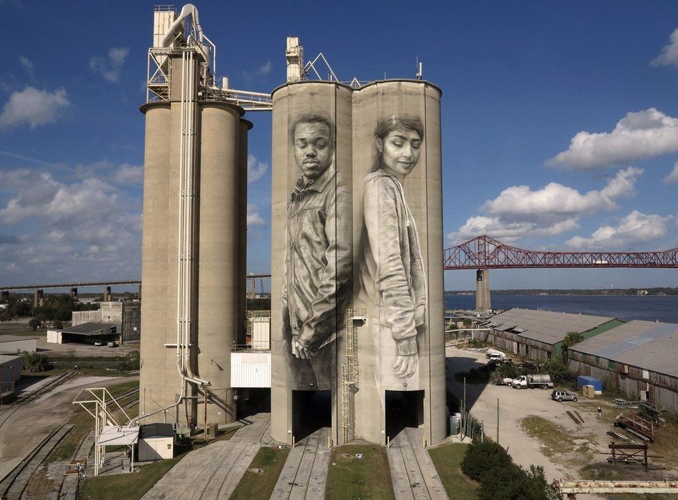 Dev silolara ilk fırça darbeleri dokunduğundan bu yana, çevrede toplananlar çalışmayı izlemeye başladı.