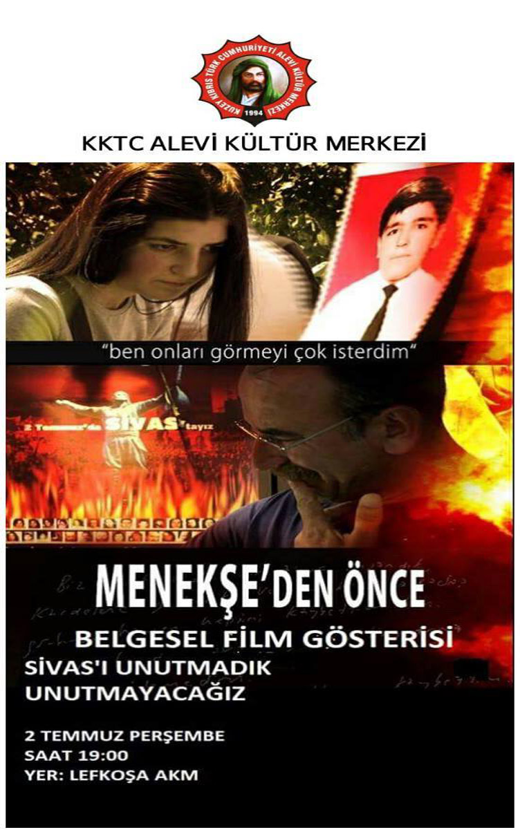 Derneğimiz Sivas katliamının yıldönümü nedeniyle 2 Temmuz Perşembe günü Saat 19:00’da Atatürk Kültür Merkezinde anma etkinliği düzenlenecektir. Etkinlikte “Menekşeden Önce” adlı belgesel film gösterimi de yer alacaktır.