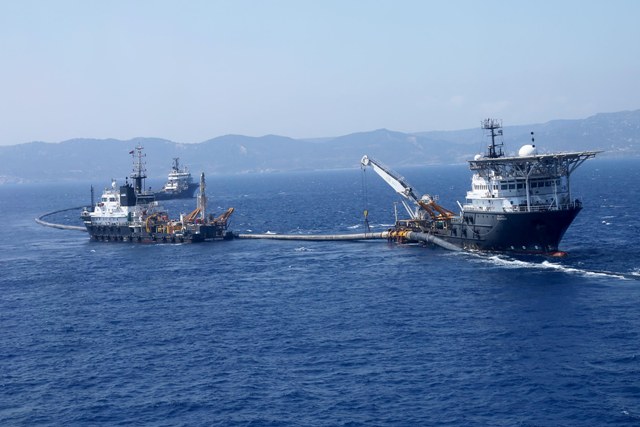 Veysel Eroğlu, bir soru üzerine, “Elektrik de gelecek” dedi. Basın açıklamasının ardından son borunun bağlantısı yapıldı ve suya indirildi. Eroğlu ve Sennaroğlu, borunun denize indirilmesinin ardından Norveç bandıralı gemiden helikopterle ayrıldı.