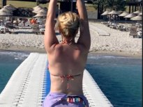 Koronavirüs sürecini evde geçiren ve sık sık evde spor yapan Songül Karlı normalleşme süreciyle birlikte kendini Ege'nin serin sularına attı.