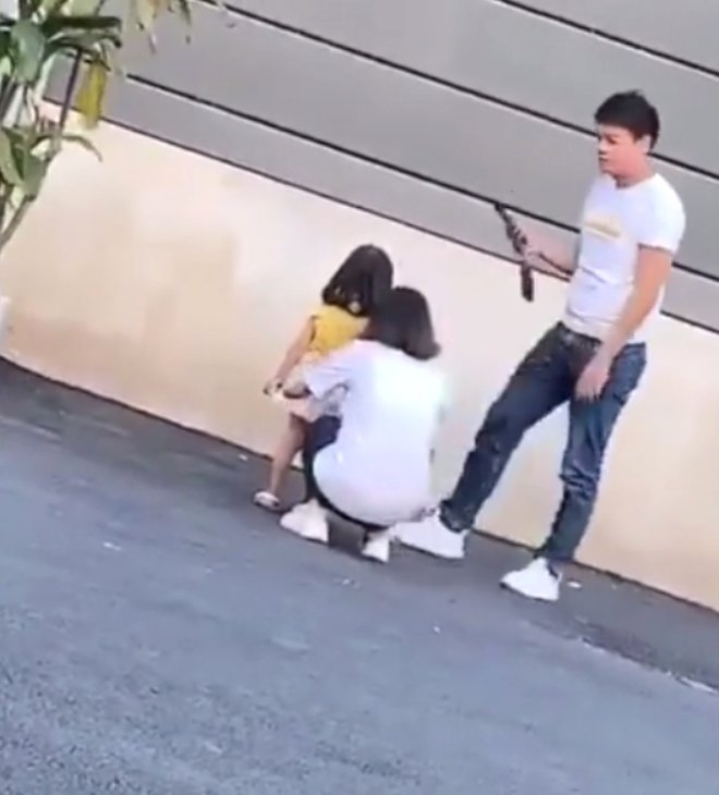 Acımasız tekmenin ardından Niu Niu adlı kız çocuğu fotoğraf çekimine devam etti.