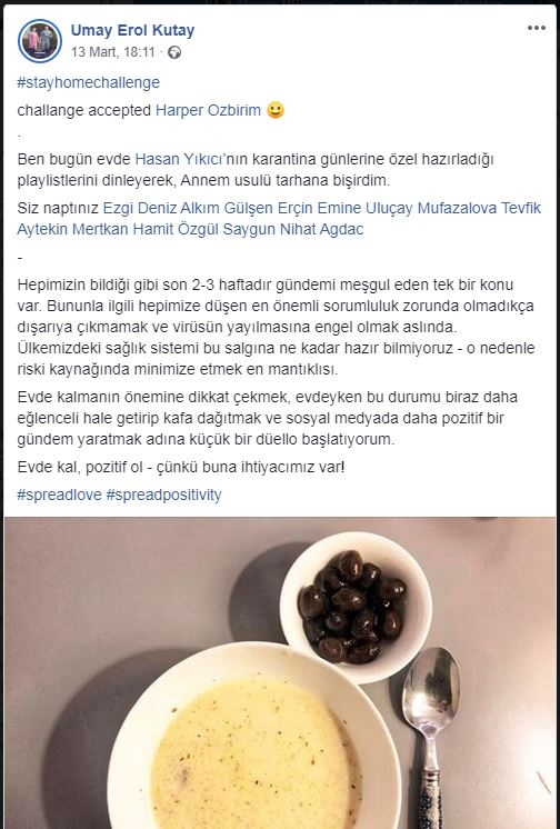 Ülkemizde ve Dünyada ana gündem maddesi haline gelen korona virüs nedeniyle, evde kal anlamına gelen #stayhomechallenge akımı başladı. #stayhomechallenge’a dünyada olduğu gibi ülkemizden de yüzlerce insan katıldı