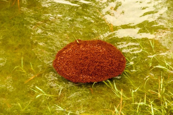 Karıncalar, havayı ortada hapsedecek kadar sıkı şekilde birbirleriyle ağ oluştururlar ve alttaki karıncalar o kadar sıkı birleşir ki, içlerinden su geçemez. Ateş karıncaları, bu yapılarda haftalar boyunca ve hatta daha fazla süre hayatta kalabiliyorlar ancak yüzdükçe, kolonileştirmek için sık sık yeni ve kuru karalar arıyorlar.
