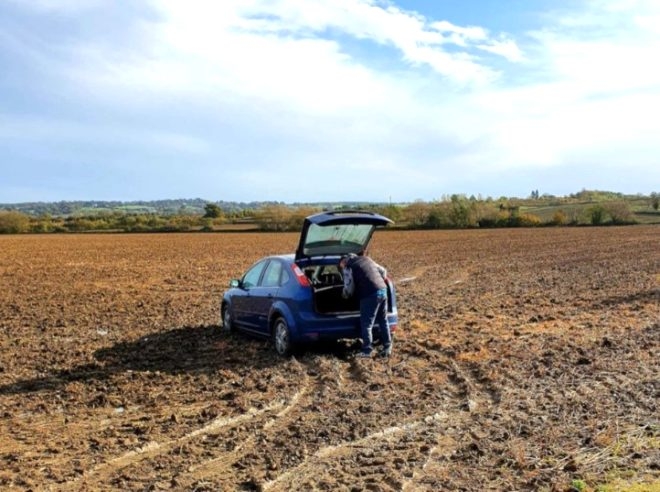 İngiltere'nin Milton Keynes şehrinde bir çift, arabalarını tarlaya çekip cinsel ilişkiye girdi. Çift, ilişkiye girdiği sırada araba çamura saplandı. Arabayı saplandığı yerden çıkartamayan ikili, çareyi polisi aramakta buldu.