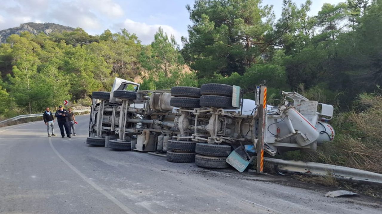 Tatlısu-Geçitkale Anayolu’nda beton mikseri devrildi!