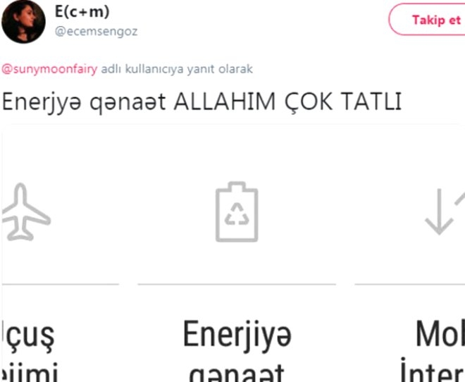 Twitter'da '@sunymoonfairy' isimli kullanıcının dilini Azerice yaptığı telefon ekranı görüntüleri sosyal medyayı kasıp kavurdu.