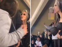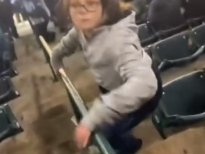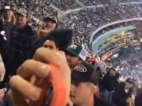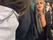 Amerika'da Angel Stadyumunda farklı türden maçların yapıldığı bir spor organizasyonda bir kadın bluzunu açıp göğüslerini kalabalığa doğru sallamaya başladı.