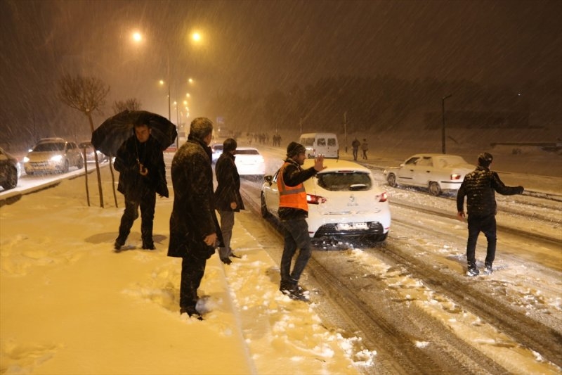 Bölgede kar yağışı nedeniyle ulaşım, güçlükle sağlandı.