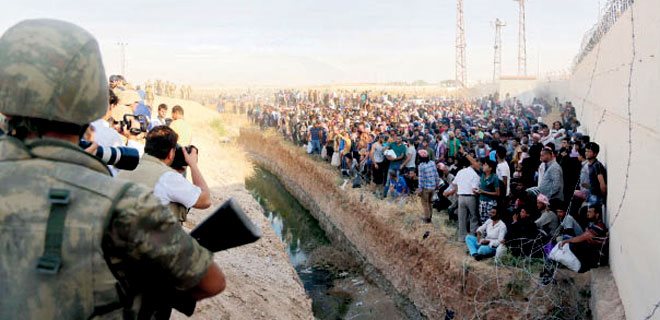 IŞİD militanları tarafından geri dönülmeye zorlanan binlerce Suriyelinin bekleyişi uzun süre devam etti. Bombardımandan kaçan Suriyeliler, eşleri ve çocuklarıyla birlikte yaklaşık 40 derece sıcakta açlığa ve susuzluğa karşı da yaşam mücadelesi verdi.