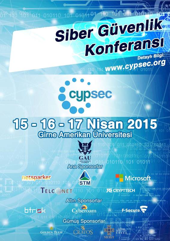 GAÜ Uluslararası Kongre Merkezi Spectrum Hall’de 15-16-17 Nisan tarihlerinde gerçekleşecek olan CypSec - KKTC Siber Güvenlik Konferansı ‘15, konusunda uzman kişiler tarafından yapılacak uygulamalı sunumların yanısıra, katılımcıların merak ettikleri konulara cevap bulmakla kalmayıp uygulamalı olarak görebilecekleri bir platform sunacak.