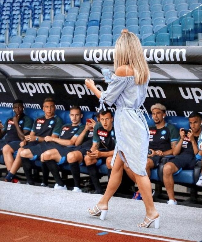 Dazn muhabiri güzel Diletta, Napoli benchinin önünden geçerken...