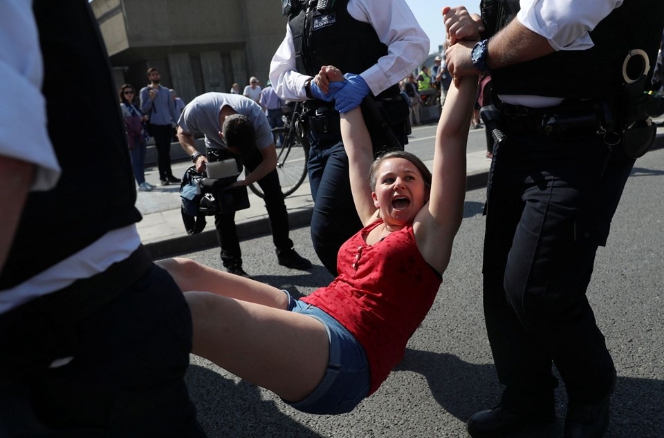 İngiliz oyuncu Emma Thompson ülkesinde devam eden iklim protestolarına destek verdi. Protestonun simgesi olan pembe tekneye çıkan Thompson hükümeti sert biçimde eleştirdi.