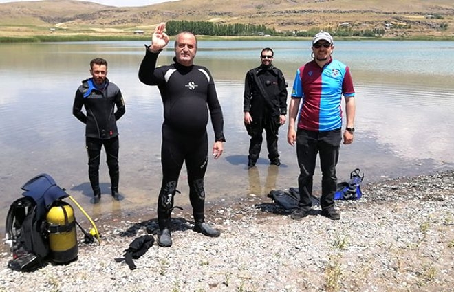 Van Gölü'nde çıkan bir batık gemi den görüntüler