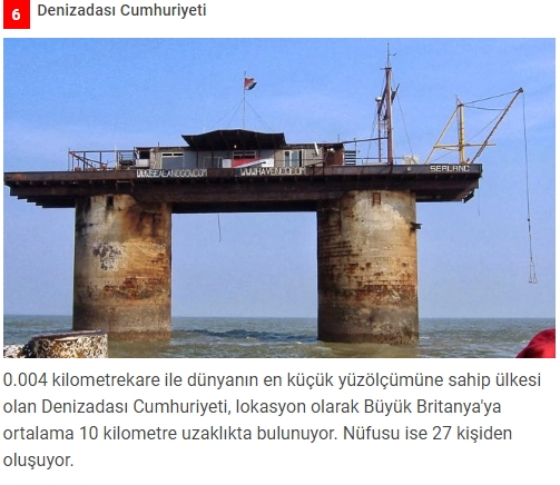 0.004 kilometrekare ile dünyanın en küçük yüzölçümüne sahip ülkesi olan Denizadası Cumhuriyeti, lokasyon olarak Büyük Britanya'ya ortalama 10 kilometre uzaklıkta bulunuyor. Nüfusu ise 27 kişiden oluşuyor.